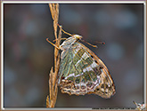 Le dessous des ailes postérieures est vert avec des bandes transversales argentées.