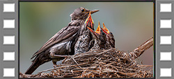 Le mâle est entièrement noir de jais, le bec jaune et un anneau jaune autour de l'œil, il possède un vaste répertoire de vocalisations. En savoir plus... (Texte IA) |