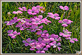 Plante vivace de 15 à 30 cm. Fleurs roses, isolées, formées de 5 pétales séparés les uns des autres, dentés, marqués de taches blanches.